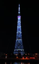 Художественная подстветка с проблесковыми светильниками серии Quadro производства Pfannenberg на телебашне в Санкт-Петербурге